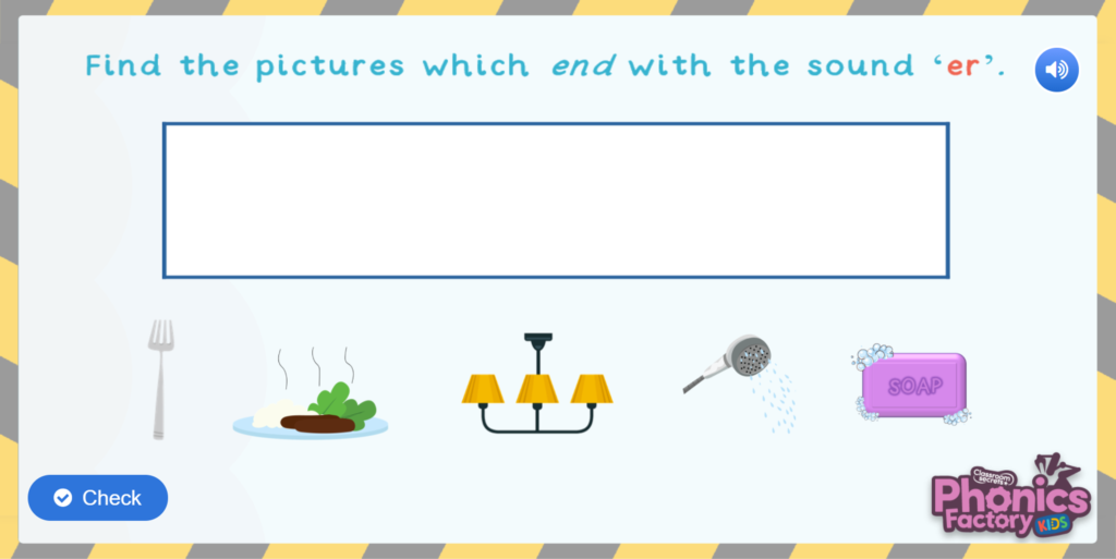 Can you hear the ‘er’ sound in words? See if you can find all the words with the ‘er’ sound at the end when playing this Phonics Phase 3 er Sound Game.