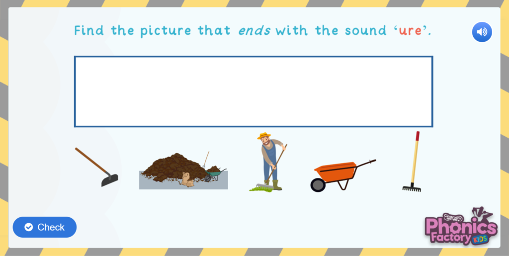 Can you hear the ‘ure’ sound in words? See if you can find all the words with the ‘ure’ sound in the middle when playing this Phonics Phase 3 ure Sound Game.