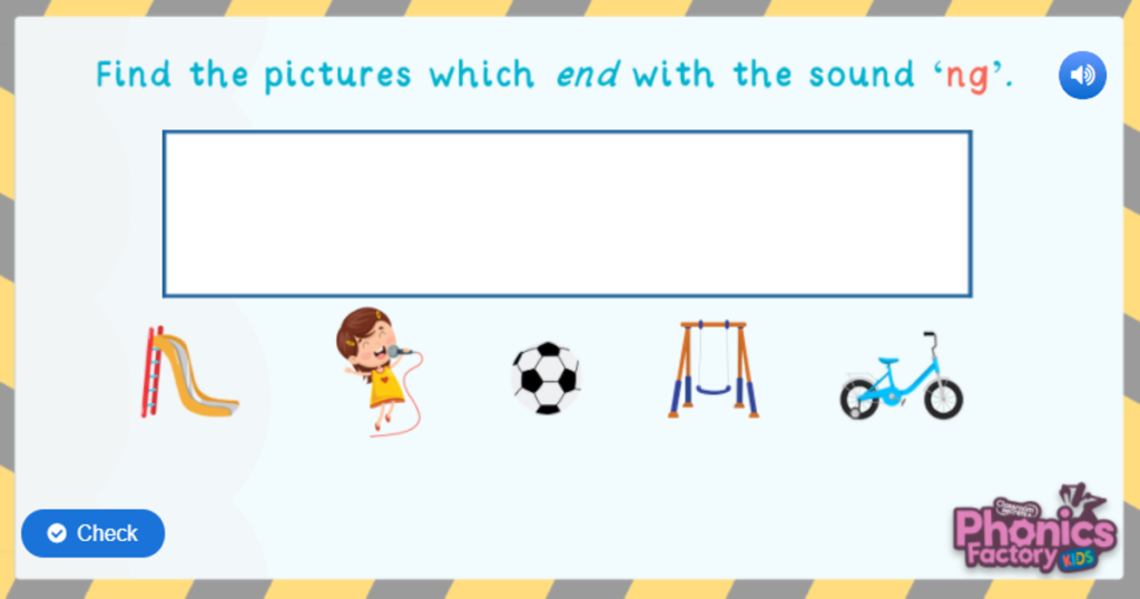 Have fun playing this Phonics Phase 3 ng Sound Game. Can you think of any words that end with the sound ng?