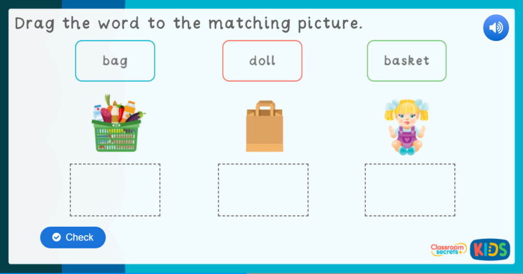 Play this Reception Pet Labelling Game to practise using your phonics knowledge to label images of pet animal related words. There are six images for you to complete. How many will you label correctly?