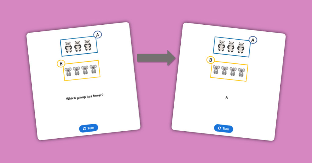 Have fun playing this fun Reception More and Fewer Game. Which group has the most objects? Which group has fewer objects? Turn the card over to see the answer. Were you correct?