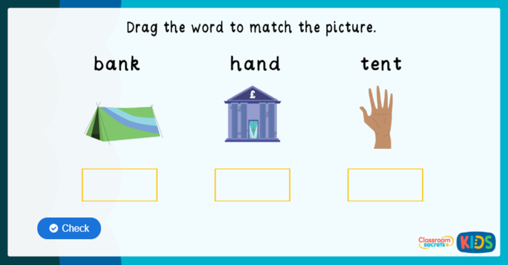 Play this fun Phonics Word Match CVCC Game to practise your letters and sounds. Can you hear all the sounds in the word? Drag and drop the word to match the picture.