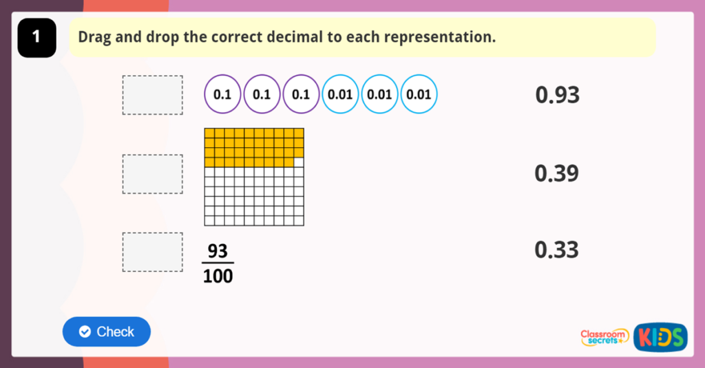 Practise recognising and writing hundredths as decimals with this Year 4 Hundredths as Decimals activity! Do you know your tenths from hundredths?