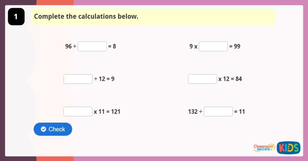 Use your 11 and 12 times tables to complete the three challenges in this Year 4 11 and 12 Times Table activity. Remember, you can divide and multiply!