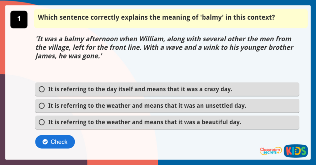 Year 6 Word Meanings Challenge Activity gives you vocabulary questions based on the Year 6 Reading Comprehension 'Escape!' Can you answer them all correctly?